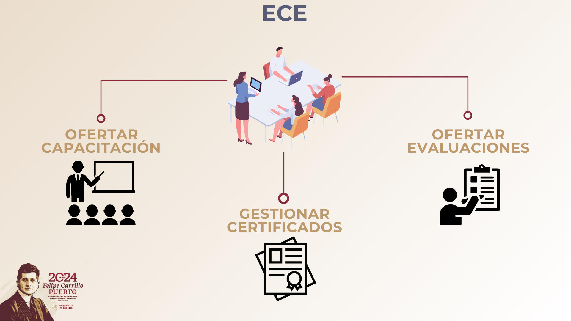 La ECE sanciona la gestión de un Certificado de Competencias oficial, el cual avala que una persona DEMOSTRÓ ser competente en un Estándar de Competencias avalado por un sector productivo.